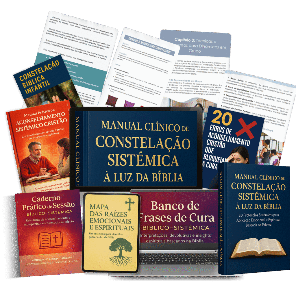 O Manual Clínico de Constelação Sistêmica à Luz da Bíblia traduz as dinâmicas familiares em aplicação prática, capacitando o profissional a compreender, conduzir e intervir com fundamento bíblico e segurança emocional